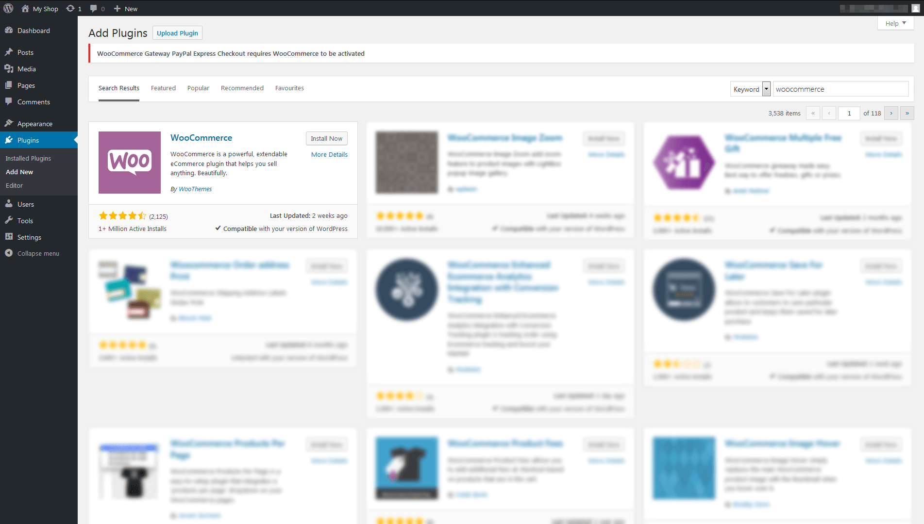 If you are using Bamboozles' Managed Wordpress you can install WooCommerce and its most important Free Plugins with a single Click in your Wordpress Console under "Plugin Packages".